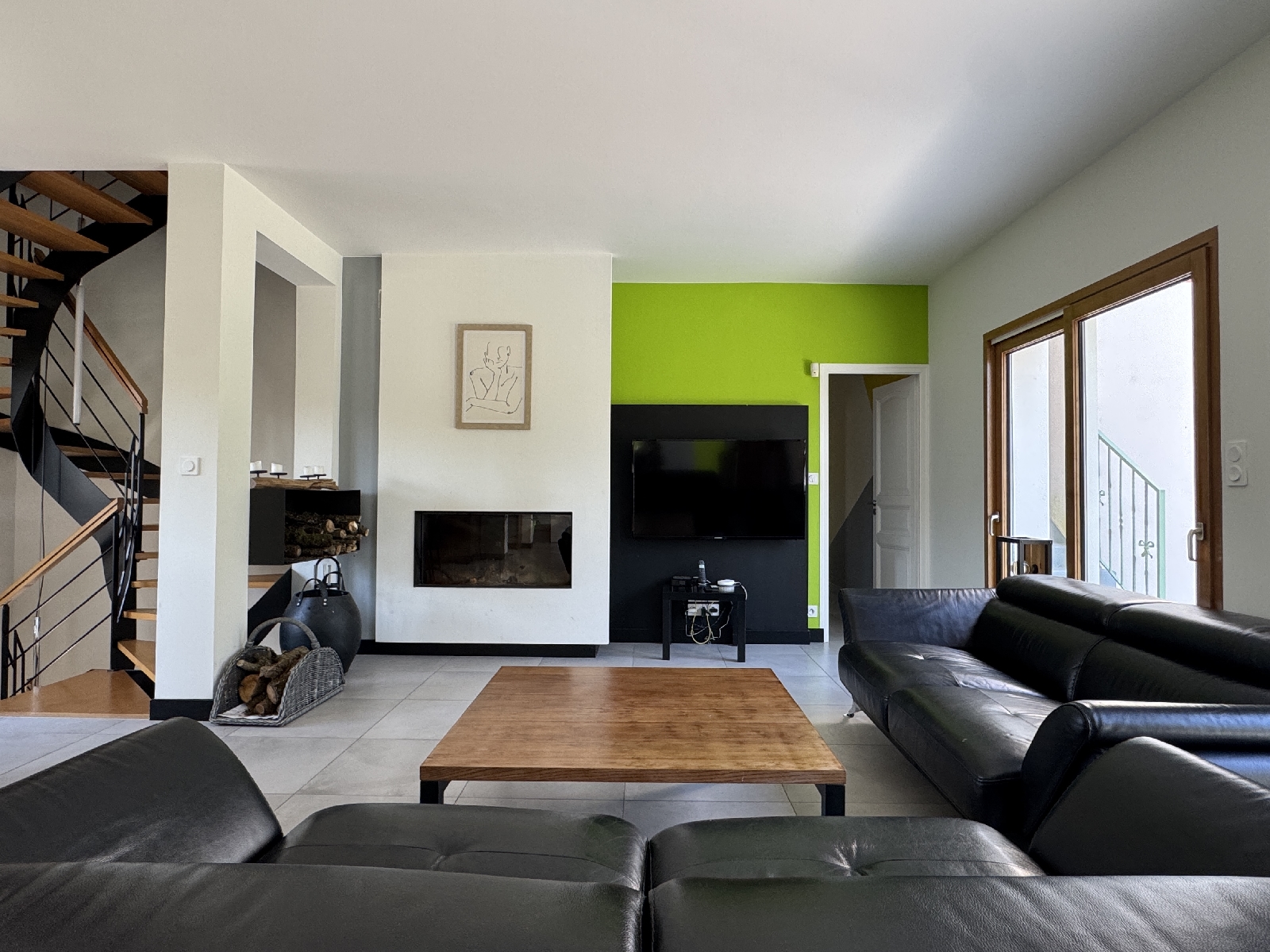 Au niveau supérieur, un univers complet avec un séjour équipé dune kitchenette, une chambre et un espace bureau ainsi quune salle deau. Cet espace dispose dune grande terrasse « solarium » et dun accès indépendant aux extérieurs.