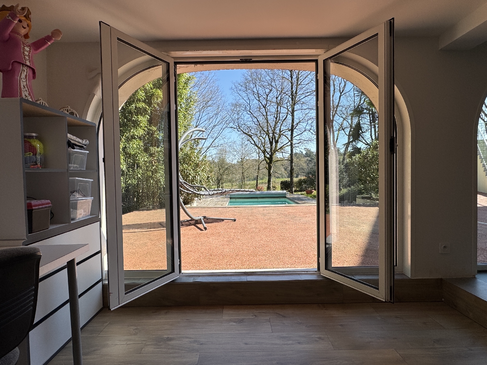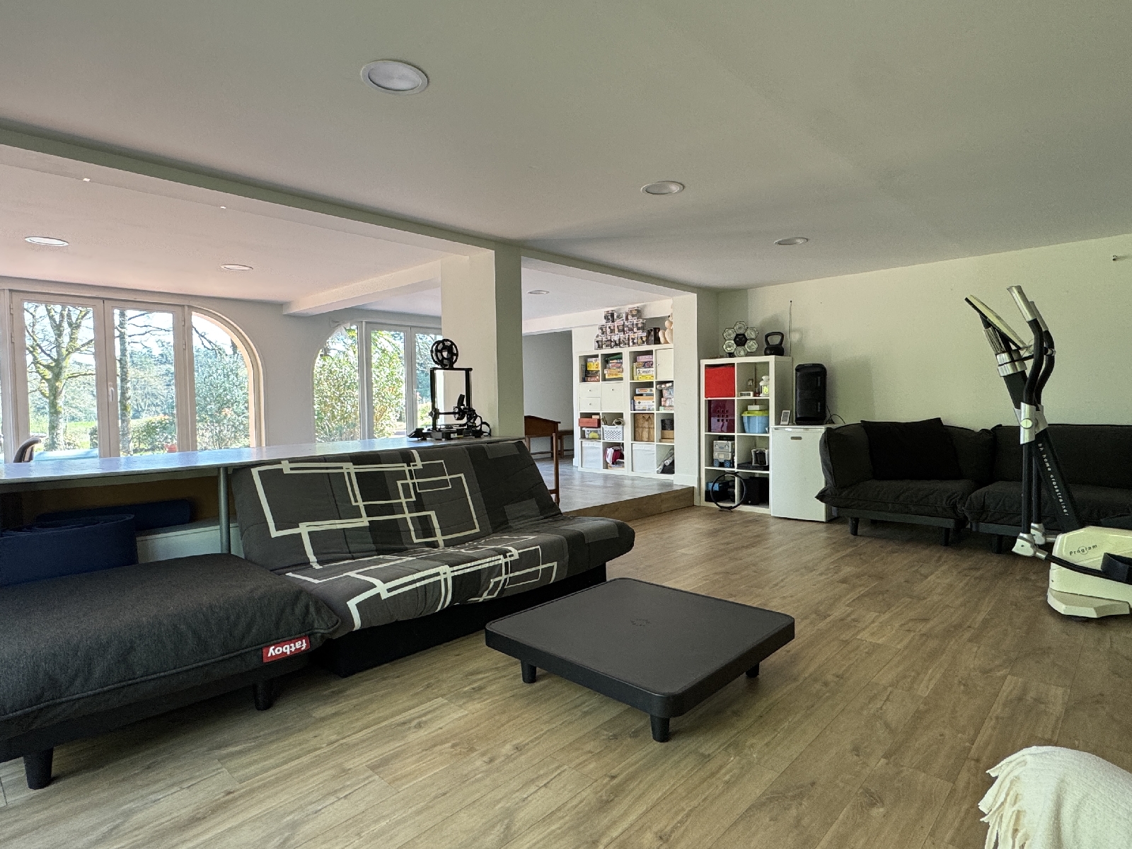 En rez-de-Jardin, de grands espaces de vie ouverts vers le Parc avec de multiples possibilités dusage comme un ou plusieurs espaces bureau, un espace détente, un espace bibliothèque ou bien-être. Une pièce Home cinéma est déjà existante au sein de ce niveau rez-de-jardin.